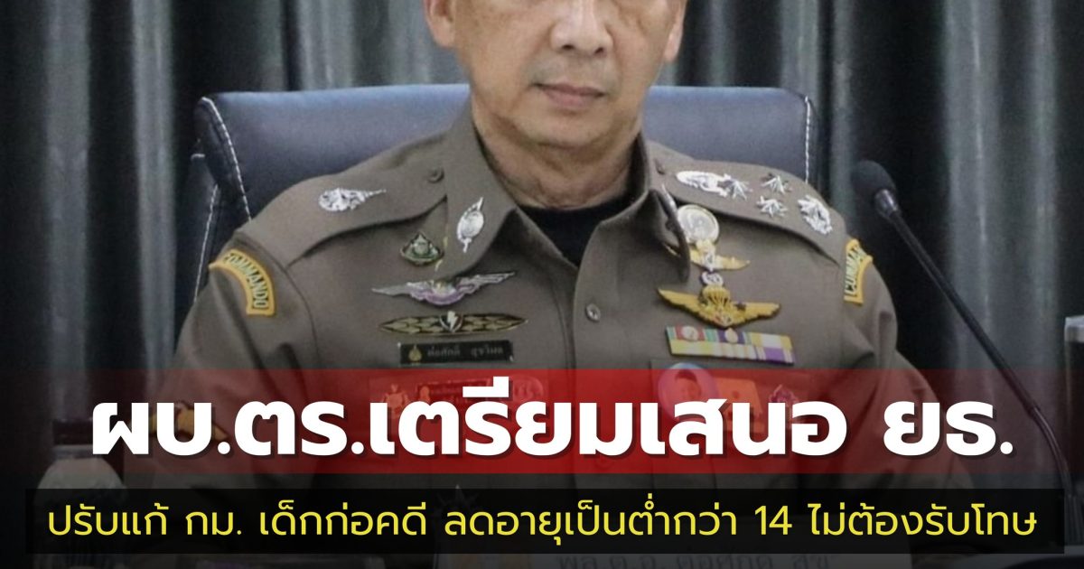 ผบ.ตร.รับรายงานผลการศึกษาอายุการกระทำผิดเด็กเยาวชน พบแนวโน้มทำผิดสูงขึ้น เกณฑ์อายุที่ทำผิดต่ำลง เตรียมเสนอกระทรวงยุติธรรม ปรับแก้ไขกฎหมายกำหนดโทษคดีเด็กไม่ต้องรับโทษ จากอายุไม่เกิน 15 ปี เป็น 14 ปี รวมทั้งแนวทางพิจารณาคดี ให้มุ่งเน้นพฤติการณ์กระทำผิดมากขึ้น เพื่อให้สอดคล้องบริบทสังคม คุ้มครองความปลอดภัยประชาชนส่วนรวม