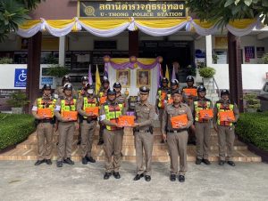 มอบเสื้อกันฝน ให้ข้าราชตำรวจจราจร สภ.อู่ทอง ทุกนาย เพื่อเอาไว้ใส่ปฏิบัติหน้าที่ในกรณีที่มีฝนตกเนื่องจากสภาพอากาศในปัจจุบันอยู่ในช่วงฤดูฝน จะได้สามารถปฏิบัติหน้าได้ด้วยความเข้มแข็งและอำนวยความสะดวกการจราจรประชาชนได้อย่างมีประสิทธิภาพ