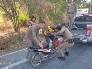 พร้อมด้วย นสต.ฝึกงาน ให้การช่วยเหลือประชาชนรถเสียบริเวณทางขึ้นแกะสลักพระใหญ่ ส่งร้านซ่อมรถมอเตอร์ไซต์บริเวณแยกวังขอน