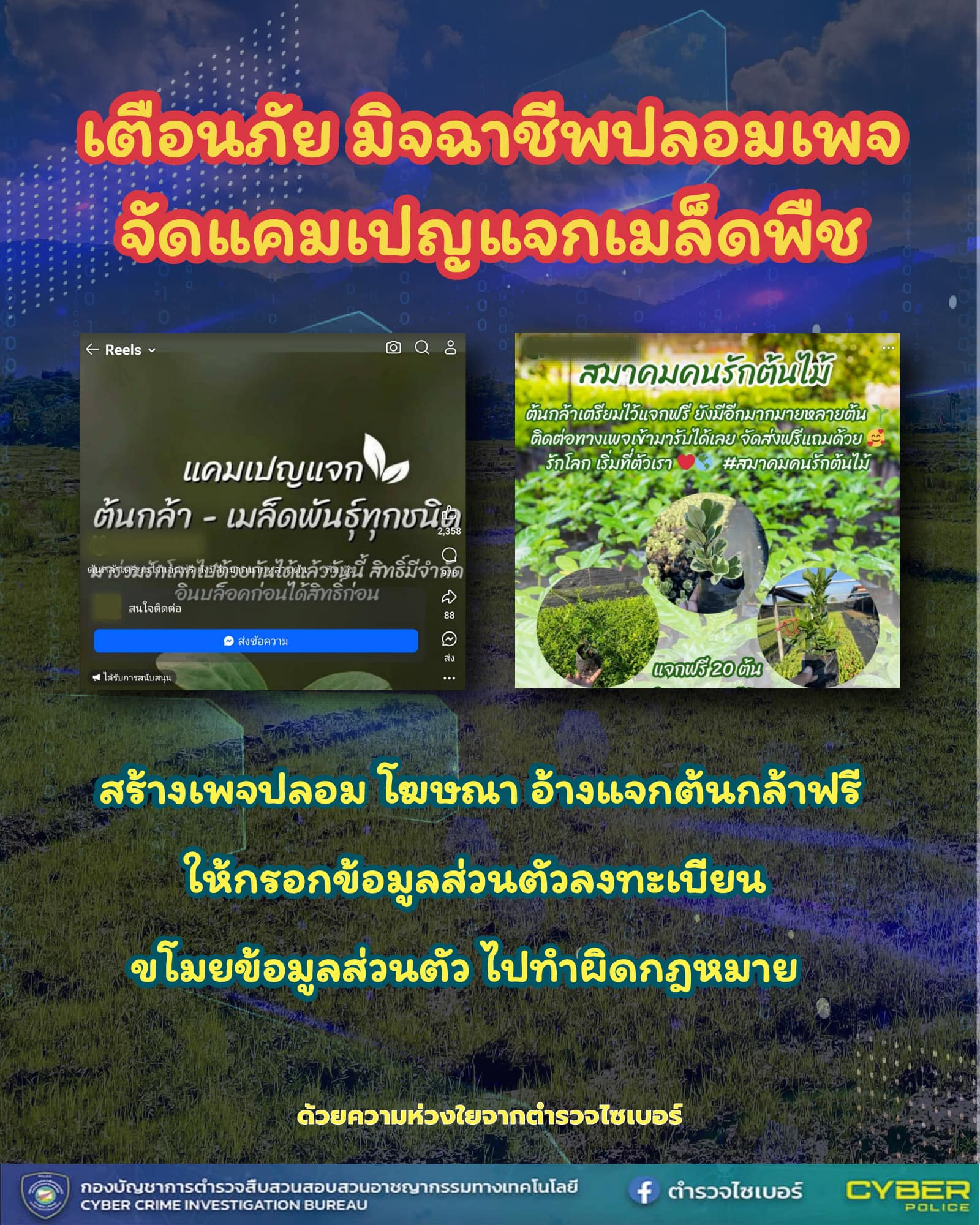 Cyber Alert !!!! ช่วงนี้กำลังมาแรงเพจปลอมจัดแคมเปญแจกเมล็ดพืช ต้นกล้า หลอกให้กรอกข้อมูลส่วนตัว.มิจฉา