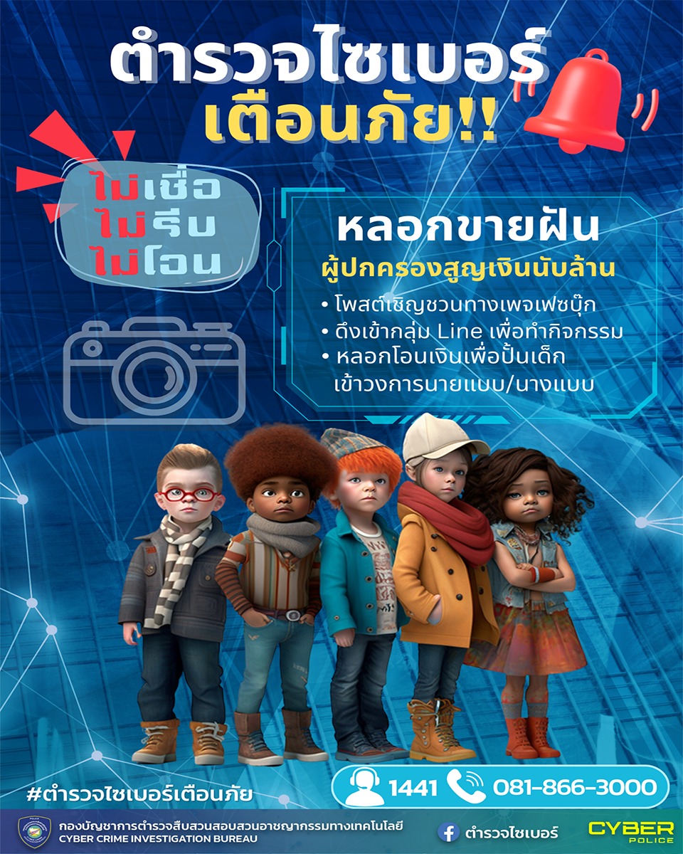 กลโกงของคนร้าย :1.มิจฉาชีพโฆษณาผ่านทางเฟสบุ๊กเชิญชวนผู้ปกครองส่งบุตรหลานเข้าคัดเลือกเป็นดารา.2.ผู้เ