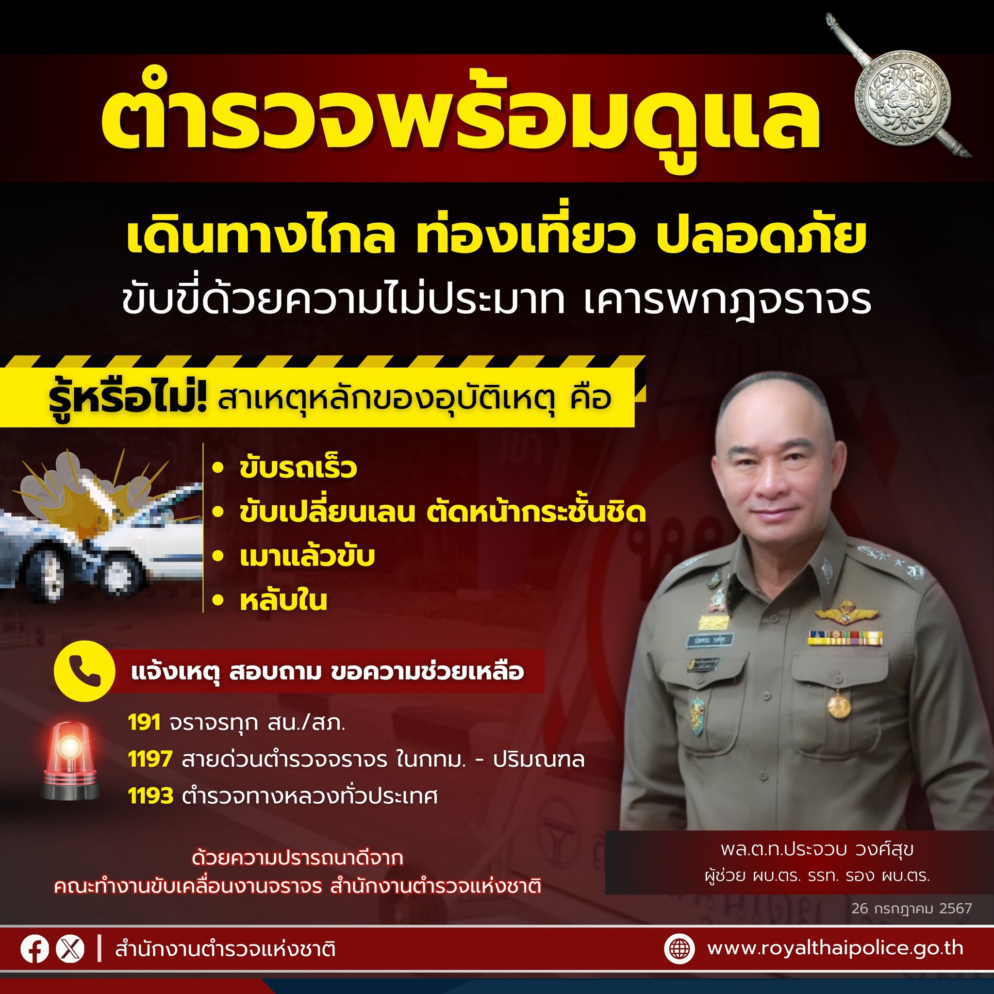 “พล.ต.ท.ประจวบ ฯ” กำชับตำรวจทางหลวง และตำรวจจราจรทั่วประเทศ เตรียมพร้อมดูแลประชาชนห้วงหยุดยาว ย้ำผู้