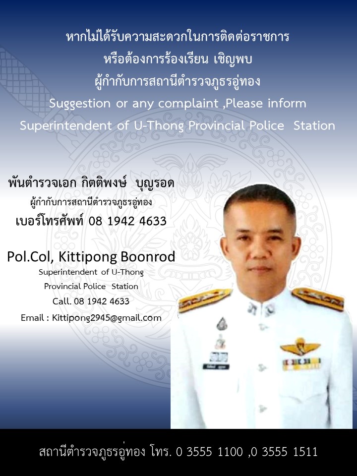 ช่องทางแจ้งเรื่องร้องเรียนการทุจริตของสถานีตำรวจภูธรอู่ทอง