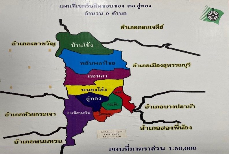 แผนผังแสดงเขตพื้นที่รับผิดชอบของ สถานีตำรวจภูธรอู่ทอง (Google map)
